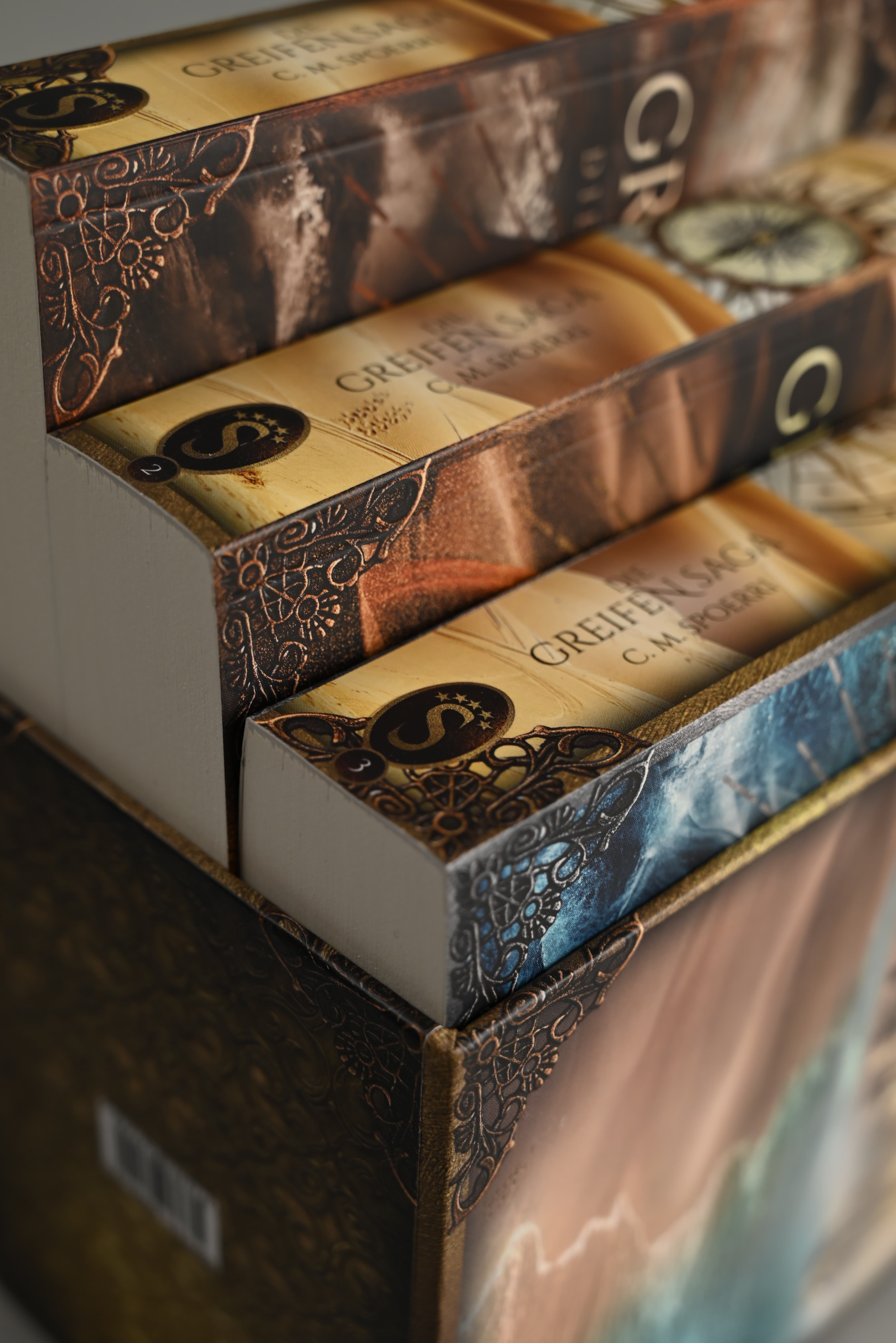 За още по-атрактивен търговски вид на книгите поставяме и специални ефекти за допълнително облагородяване на кориците - liquid gold печат, топъл печат, преге, ламиниране с матови, гланцови и метализирани фолиа, частично и релефно UV лакиране, щанцоване по контур, и още.