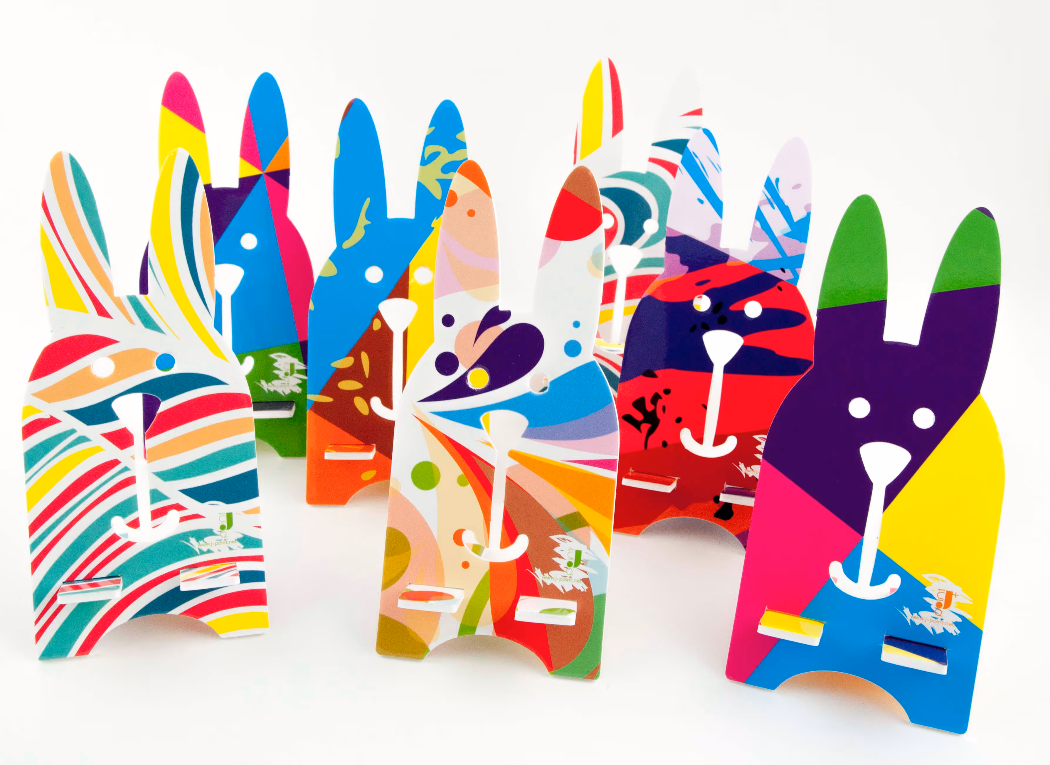 Холдъри за таблет и смартфони от двустранно каширанкоматекс, с гланц ламинат, щанцован във формата на заек.