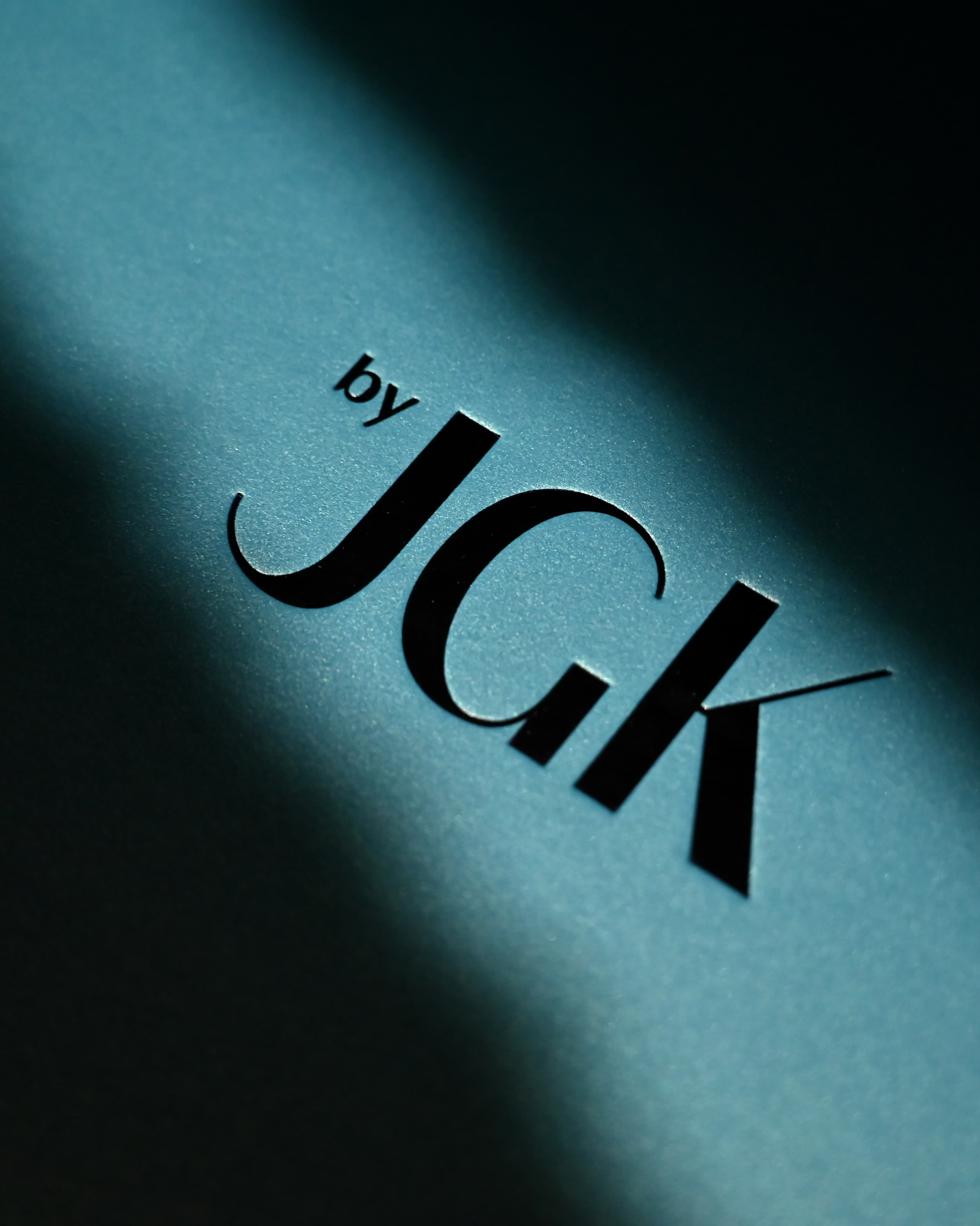 Кутия с с отделен капак от перлена хартия и с черен топъл печат за моден бранд ByJGK.
