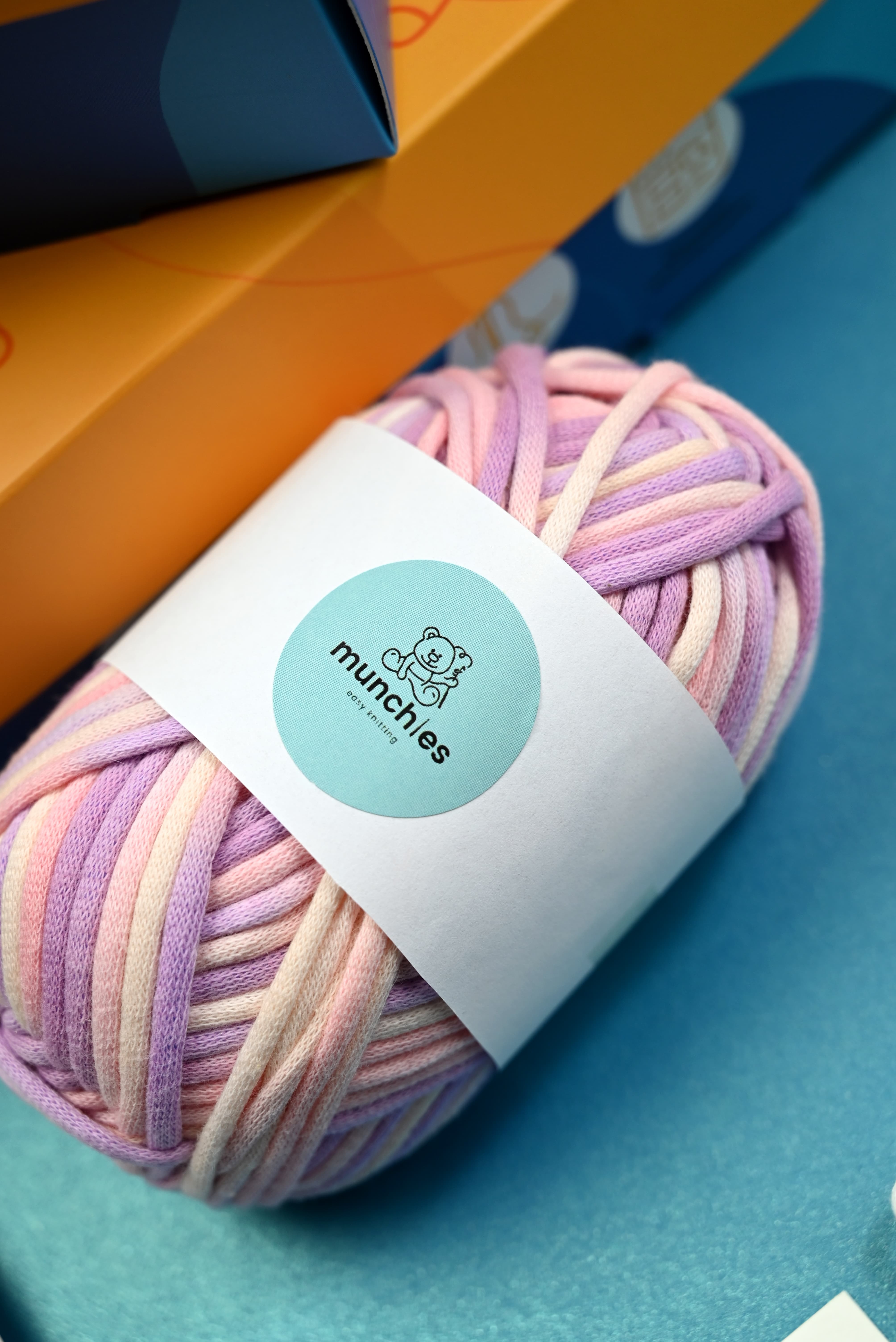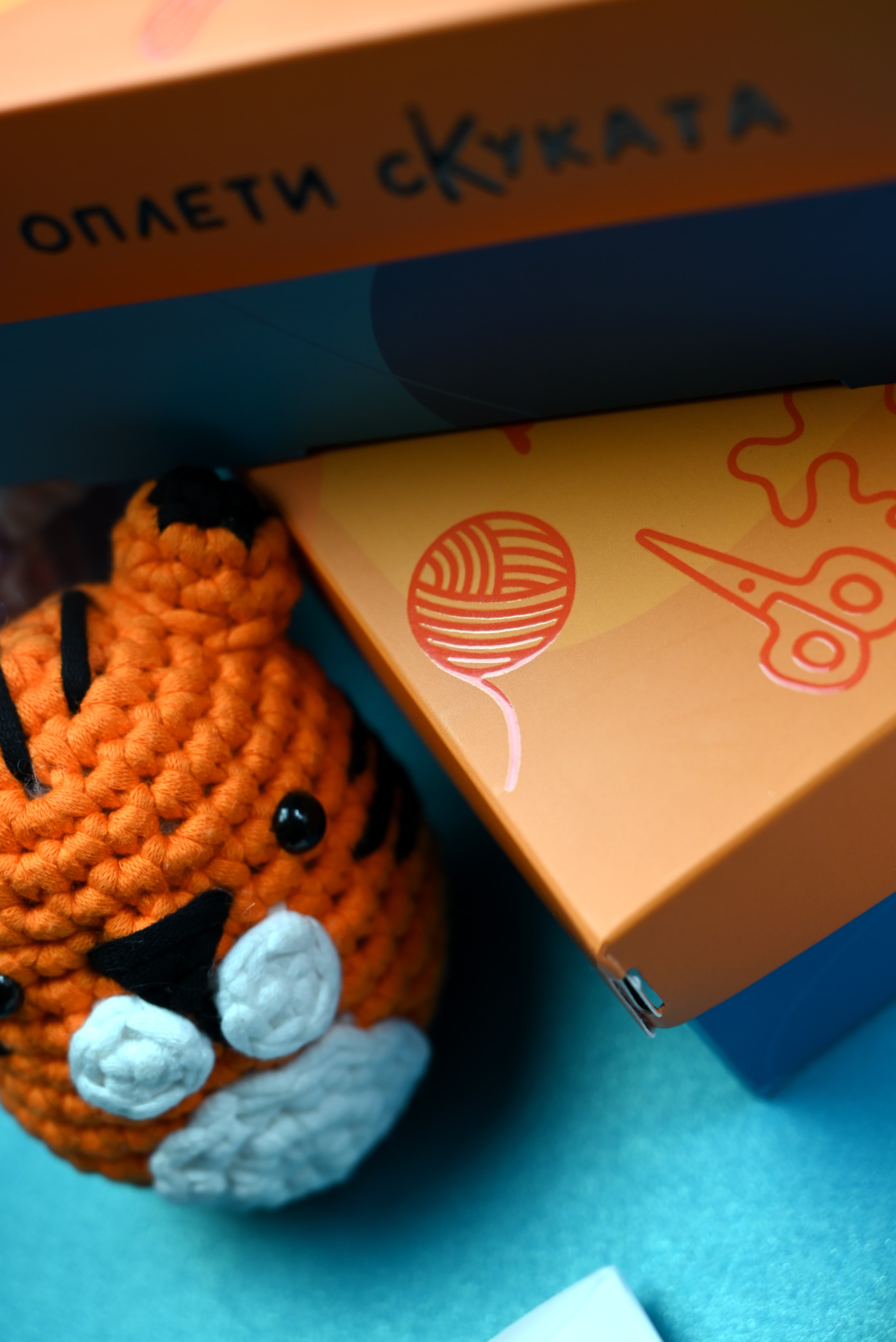 Кутии с капак и частичен релефен лак за комплекти за плетене на една кука за начинаещи на Munchies.