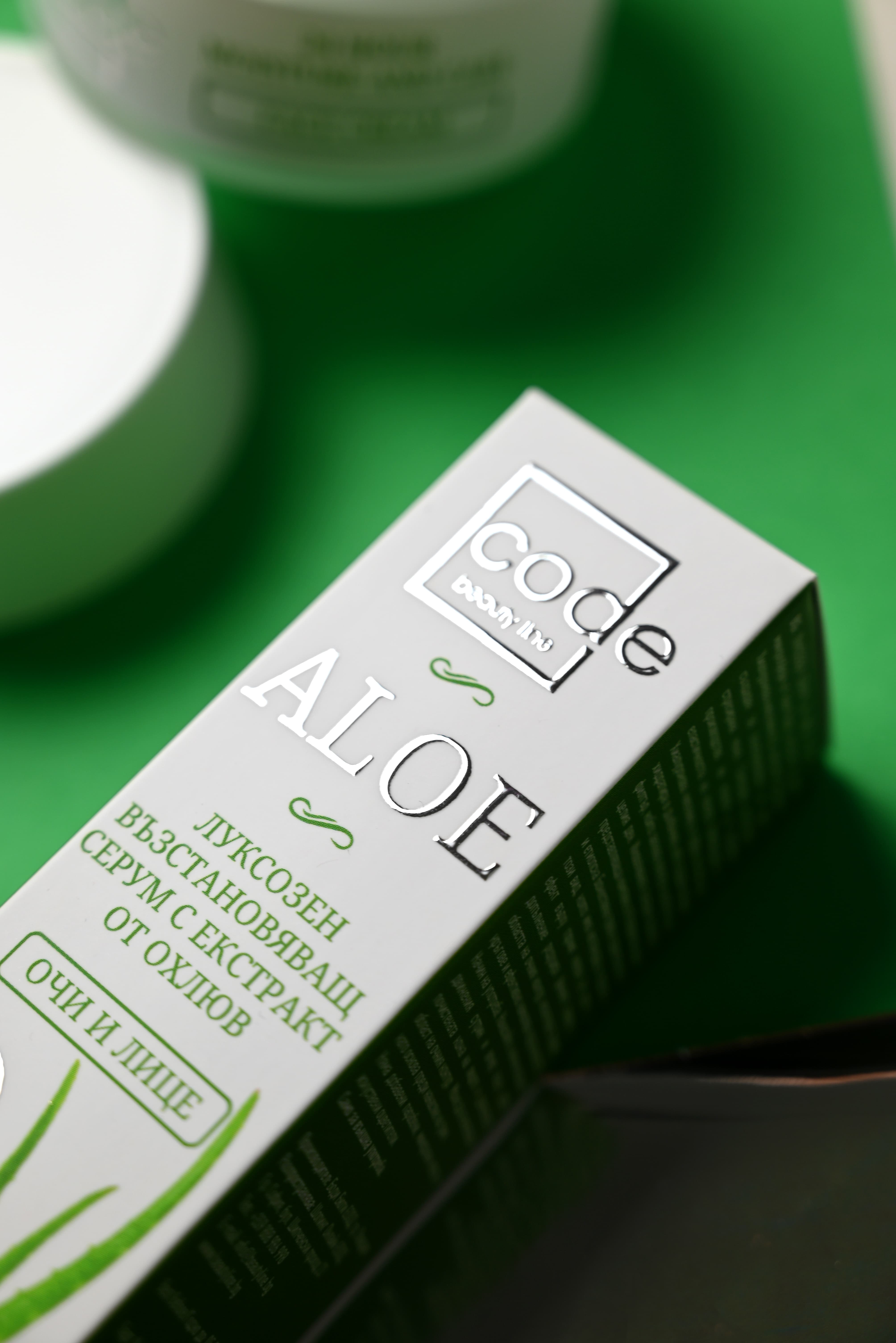 Серия от кутии и етикети за козметика Code - Beautyline с кадифен ламинат и liquid metal печат в сребро.