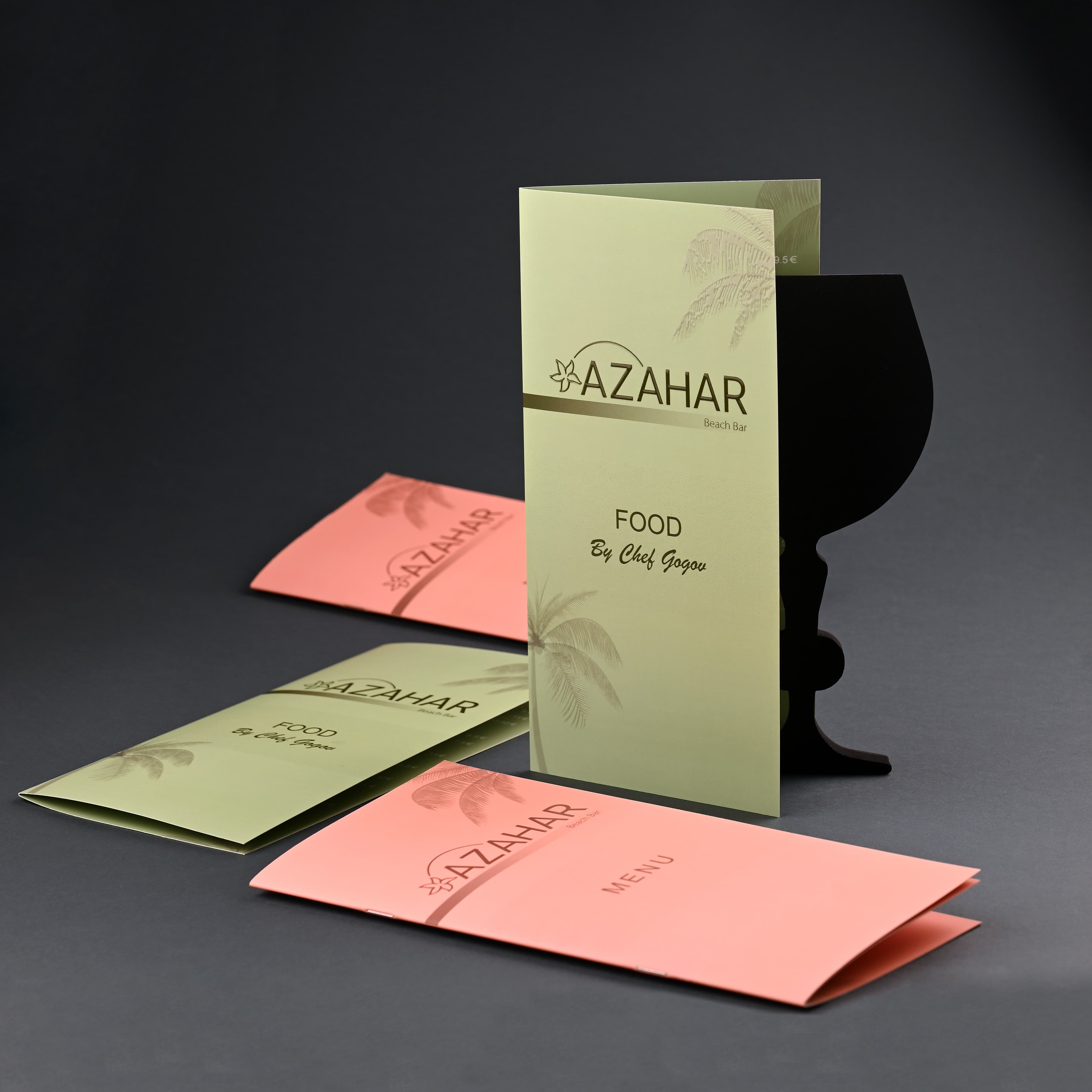 В J Point + изработваме нестандартни менюта от всякакъв калибър: дипляни, книжки, ветрило, с твърди корици, с капси, рингове, шнурове или каквото още хрумне на дизайнера. Пасват идеално за ресторанти, барове, кафенета, сладкарници, спа центрове и хотели. Или просто навсякъде, където храната не е единственото, което впечатлява.
